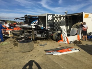 In the first heat Peter Dickson spun in front of us and with nowhere to go we were wrecked with r/f gone and a whole heap of unneccessary damage. The team worked frantically to get the car back together for the next heat and it was immaculate as always. We made the most of what we had but to lose out on a heat at this level just doesn't cut it, and very frustrating to be part of someone elses accident (again). Plus even more frustrating is being on the infield watching on as the car that caused the carnage carries on racing grrrr.