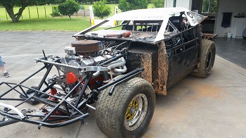 I had a feeling that was our north island tour over and done with especially when viewing what damage the car had sustained in the pits. Even the parts torn from 811 weren't immediately retrieved and returned to us and some parts never were (go figure!) But the speedway community came to the rescue with assistance being offered by lots of south islanders who were there spectating. I've gotta thank Kevy Moore, Rob Jeffcoate, Mick and Mark Carey, Matt Houlden and many others that pitched in (sorry if I missed your name here). If it wasn't for these guys, 811 wouldn't have made it back into the trailer. The second day Kevy worked so hard to get us going again that he was a broken man by the end of the day. So broken that he couldn't make it to the track and just needed to sleep, (sorry Kevy).